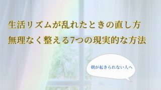生活リズムが乱れて朝がつらい、疲れが取れないと感じていませんか?この記事では生活リズムの乱れの原因と、無理なく続けられる直し方を7つ紹介します。気合や根性に頼らず、今日から整えたい人向け。